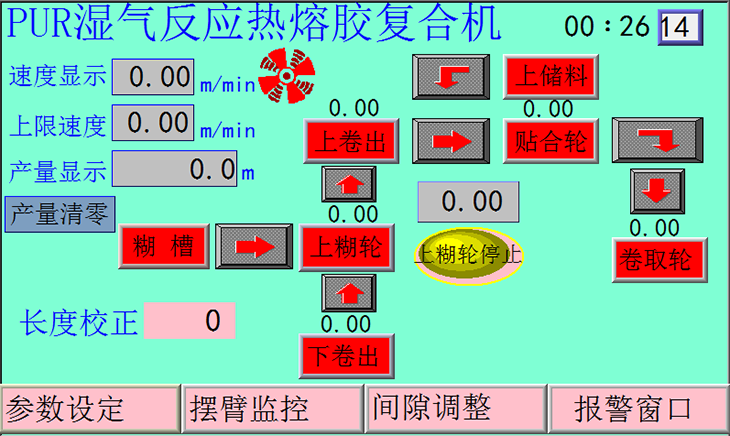 1)啟動(dòng):點(diǎn)擊此按鈕將啟動(dòng)設(shè)備運(yùn)行,并將展布輥馬達(dá)啟動(dòng)恒定運(yùn)轉(zhuǎn)。
